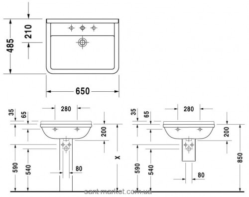 Раковина для ванной подвесная Duravit коллекция Starck 3 белая 0300650000