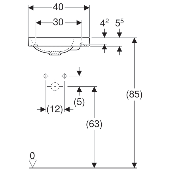 Рукомойник Geberit Acanto, отверстие для смесителя справа