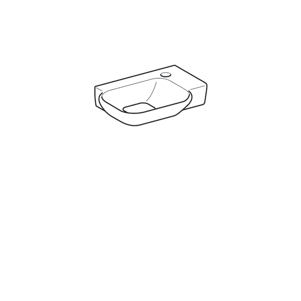 1) Раковина Geberit myDay санфарфор отверстие под смеситель справа белый/специальное керамическое покрытие KeraTect