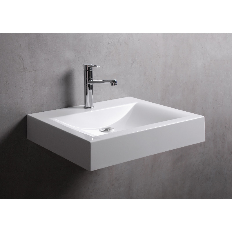 1) Раковина над стиральной машиной Fancy Marble Lily 60х50 см искусственный камень белый матовый