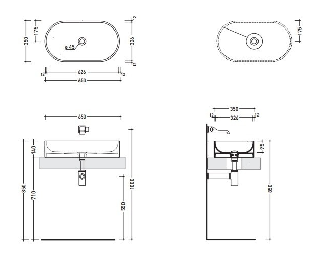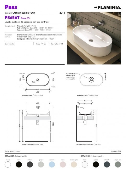 Раковина для ванной накладная Flaminia коллекция Pass белый PS65AT