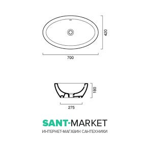 Раковина накладная на столешницу Catalano VELIS без отв. под смеситель 70х42 см белая 170VLN00