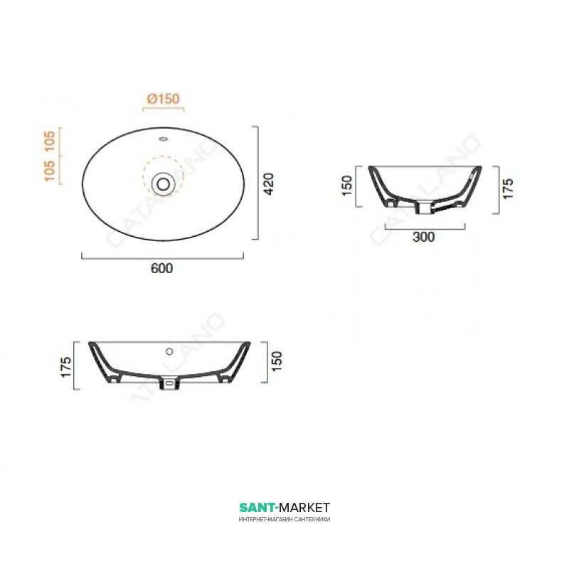 Раковина накладная на столешницу Catalano VELIS без отв. под смеситель 60х42 см белая 160VLN00