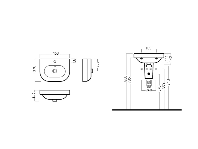 - Тип раковины: подвесная, с полупьедесталом, рукомойник