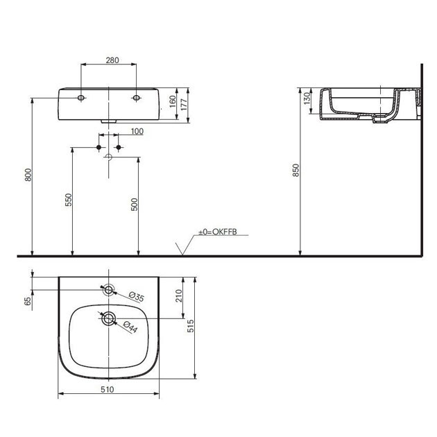 - Форма раковины: прямоугольная