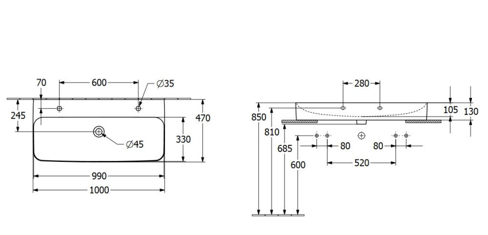 Раковина Villeroy & Boch Finion 100х47 см без перелива TitanCeram CeramicPlus каменный белый
