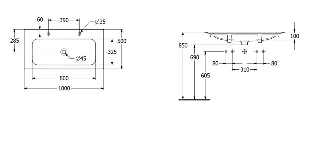 Раковина Villeroy & Boch Finion 100х50 см без перелива TitanCeram CeramicPlus альпийский белый