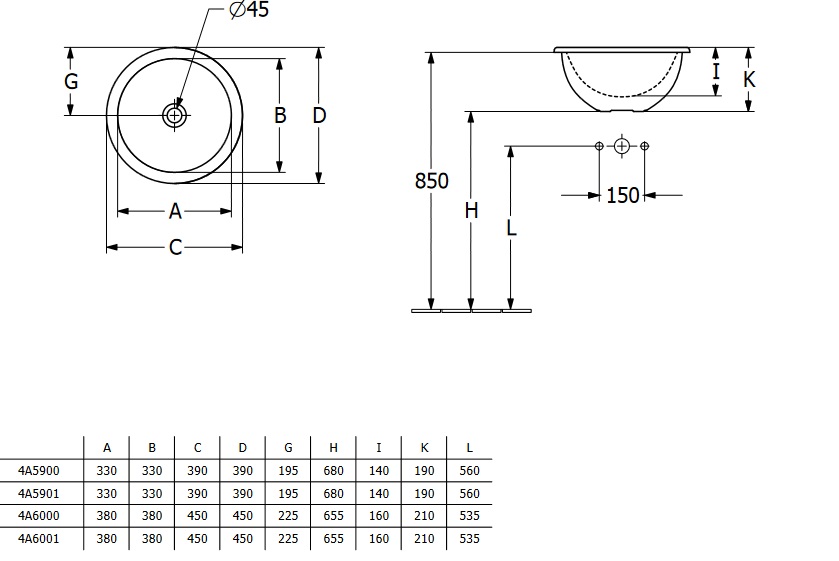 Раковина Villeroy & Boch Loop & Friends ⌀45 см с переливом TitanCeram CeramicPlus альпийский белый 4A6000R1