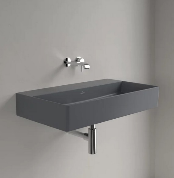 Раковина Villeroy & Boch Memento 2.0 80х47 см без перелива шлифованная TitanCeram CeramicPlus графит 4A228FI4