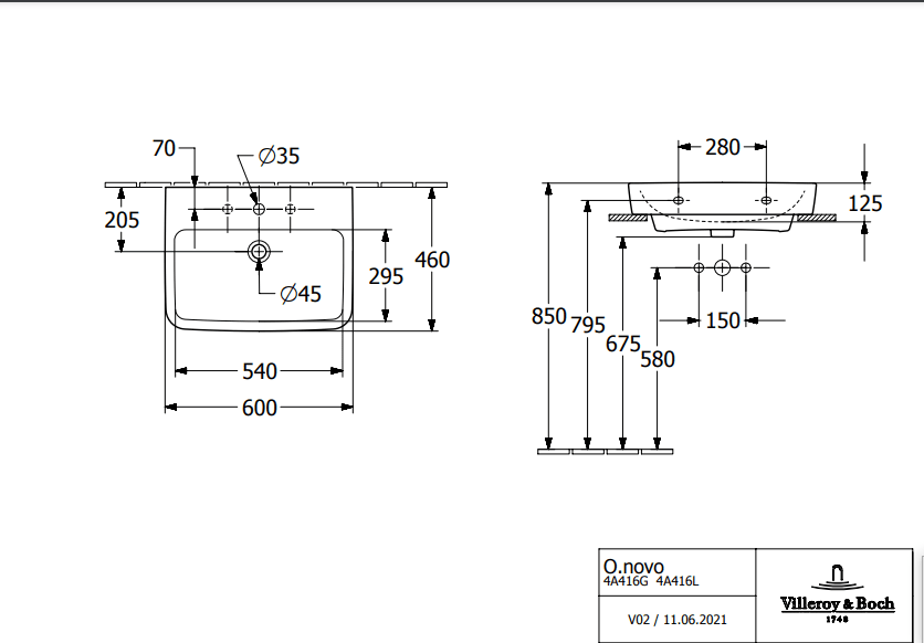 Раковина Villeroy & Boch O.novo 60х46 см шлифованная санитарная керамика альпийский белый 4A416GT2