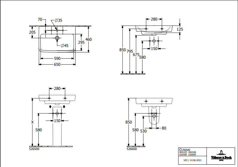 Раковина Villeroy & Boch O.novo 65х46 см санитарная керамика альпийский белый