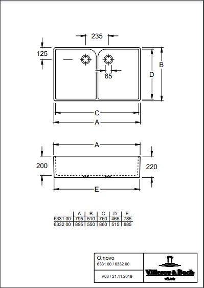 Раковина Villeroy & Boch O.novo 89,5х55 с двумя чашами санитарная керамика альпийский белый 633200R1