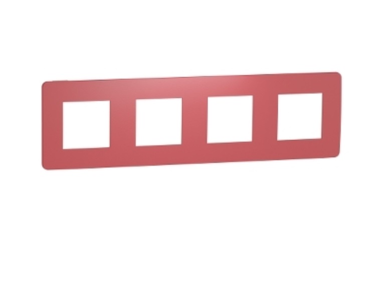 1) Рамка 4-постовая Schneider Electric Unica New Studio Color красный/белый