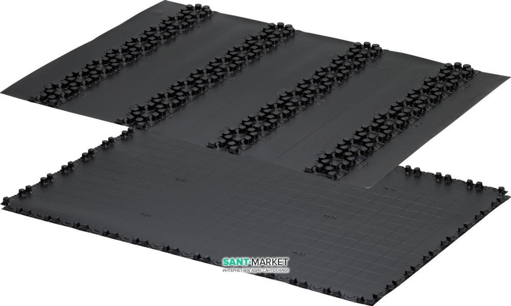 Защитное лабиринтное уплотнение исключает попадание влаги между стыков панелей, обеспечивая полную гидроизоляцию во время заливки смонтированного теплого пола цементной стяжкой.