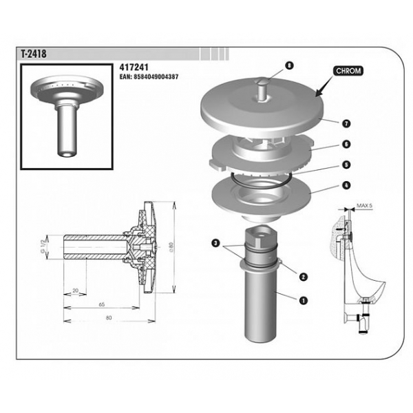 - Подходит: для писсуара Jika Domino 8411010000001