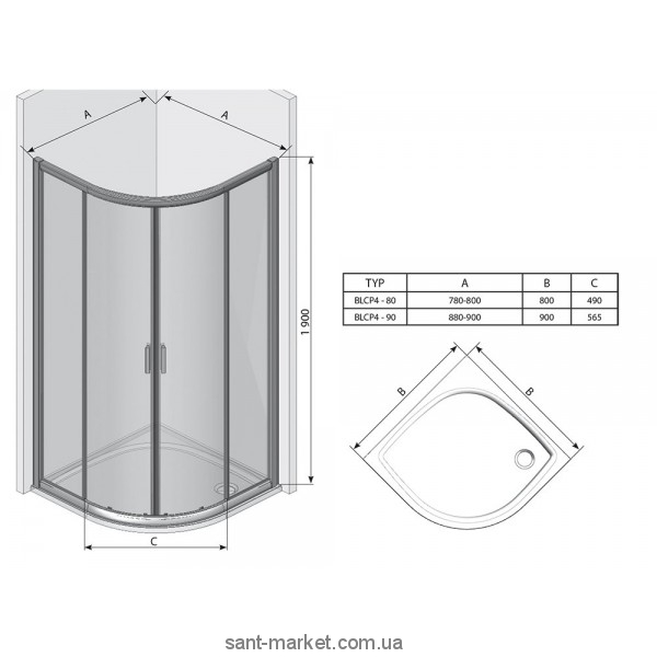 Душевая кабина Ravak Blix 90х90х190 низкий поддон BLCP4-90+Ronda 90+X01308