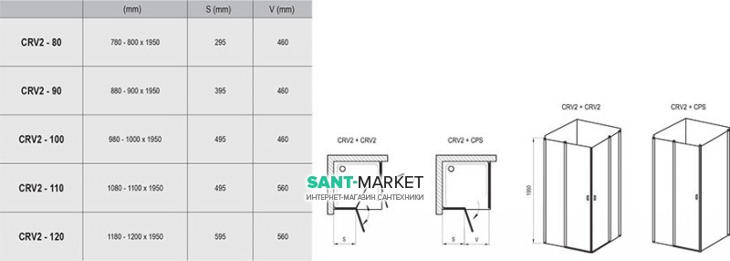 Одно изделие CRV2 образует половину душевой кабины. Для создания прямоугольной душевой кабины необходимо заказать 2x CRV2.