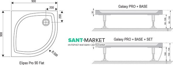 Душевой поддон литой мрамор четверть круга Ravak Elipso Pro Flat 90х90х3 белый XA237711010