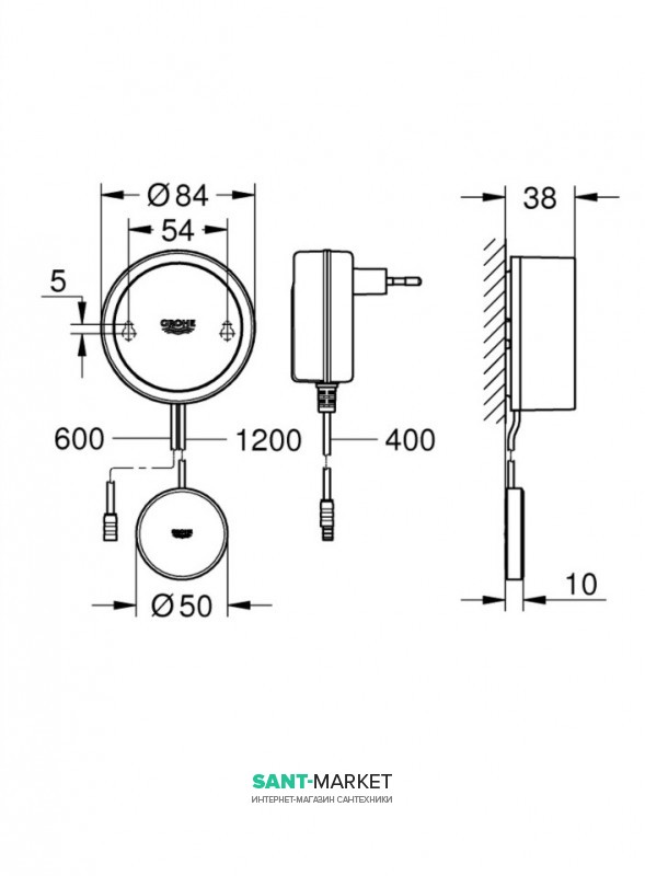 - источник питания 230 В, кабель длиной 1 м, разъем типа С