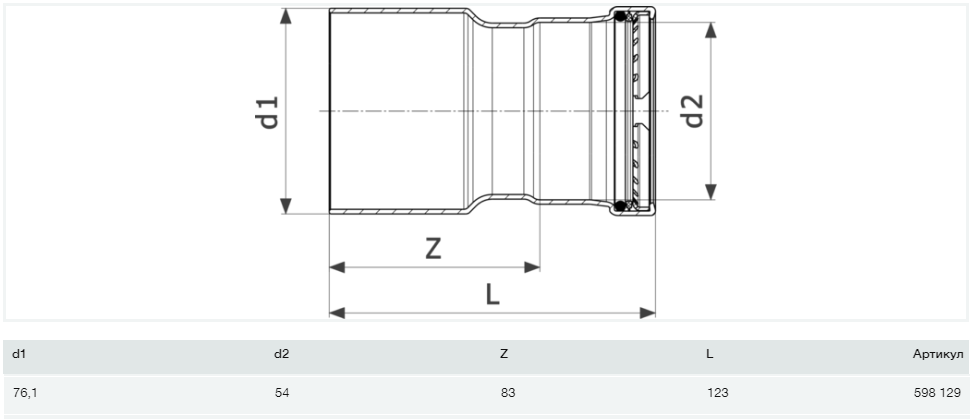 1) Редукционная вставка Viega Prestabo XL 1115.1XL 76.1х54 нелегированная сталь