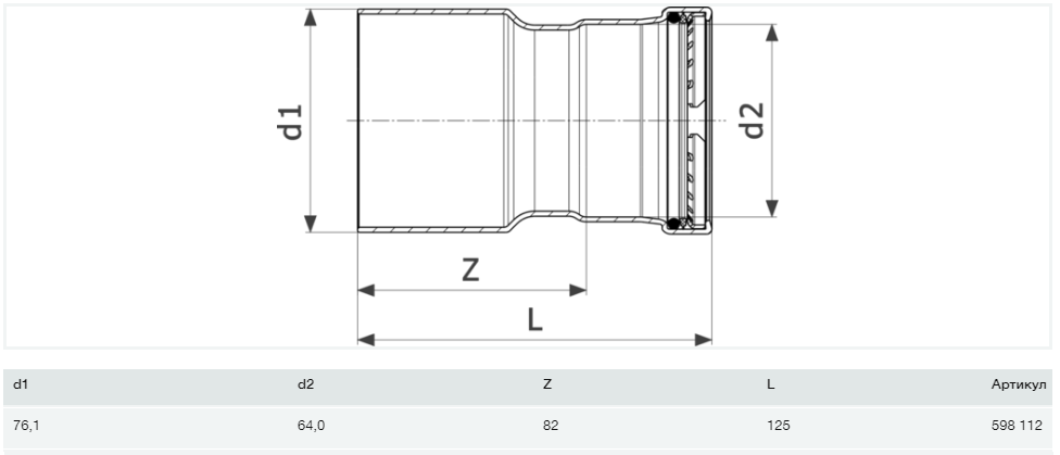 Редукционная вставка Viega Prestabo XL 1115.1XL 76.1х64 нелегированная сталь 598112