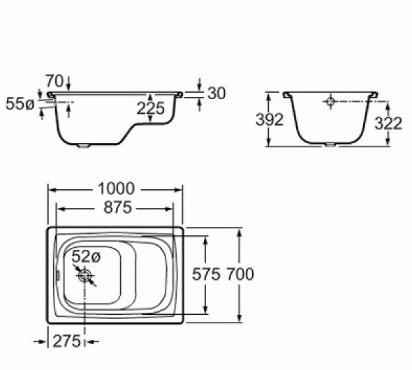 Ванна стальная встраиваемая Roca Contesa прямоугольная 100х70 с сиденьем A213100001