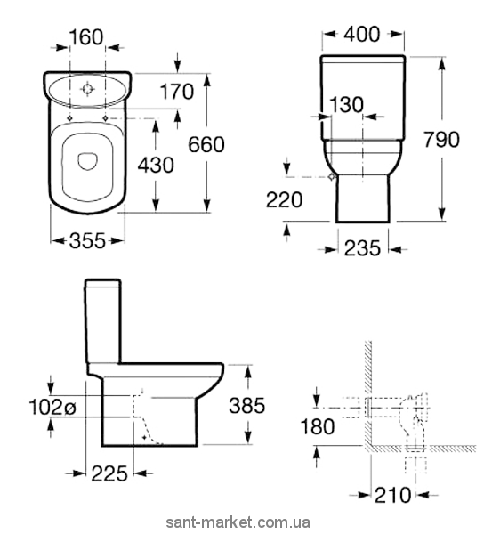 Унитаз напольный компакт Roca коллекция Dama Senso A34951500W + Сиденье