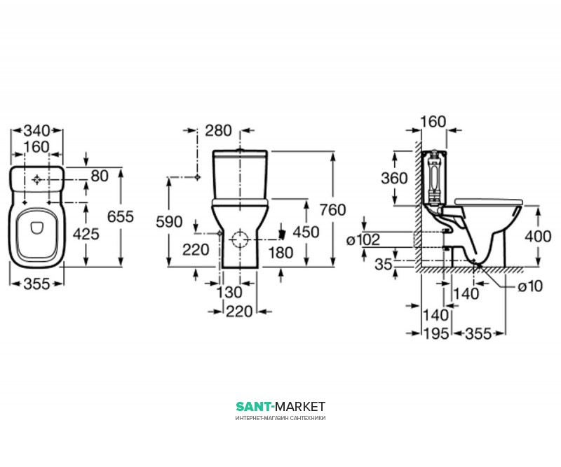 Бачок унитаза Roca Debba с механизмом смыва A341990000