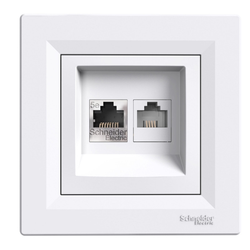 Розетка компьютерная+телефонная Schneider Electric Asfora RJ45+RJ12 5е белый EPH4900121