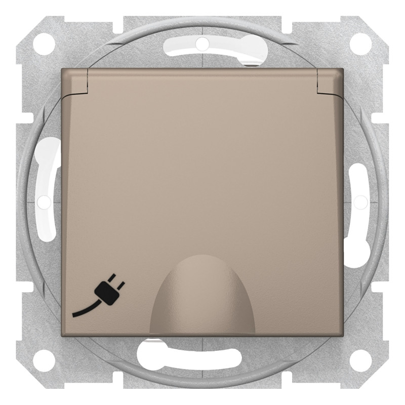 Розетка Schneider Electric Sedna IP44 с самозажимными клемами с заземлением шторками и крышкой титан SDN3100568
