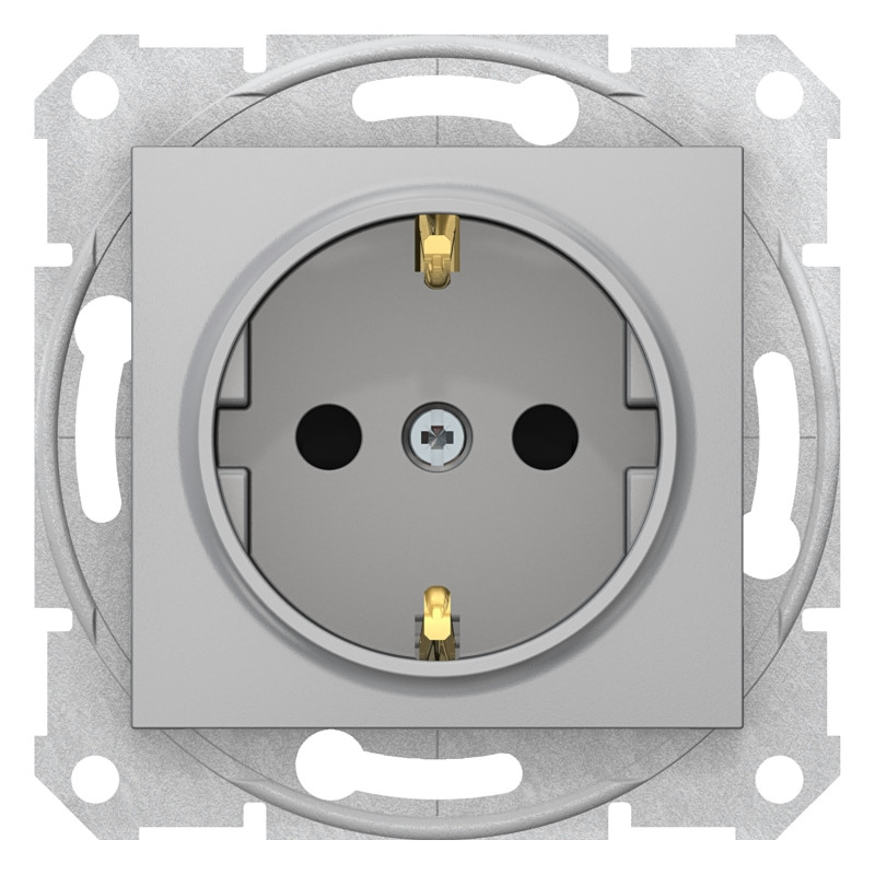 Розетка Schneider Electric Sedna с самозажимными клемами с заземлением и шторками алюминий SDN3001760