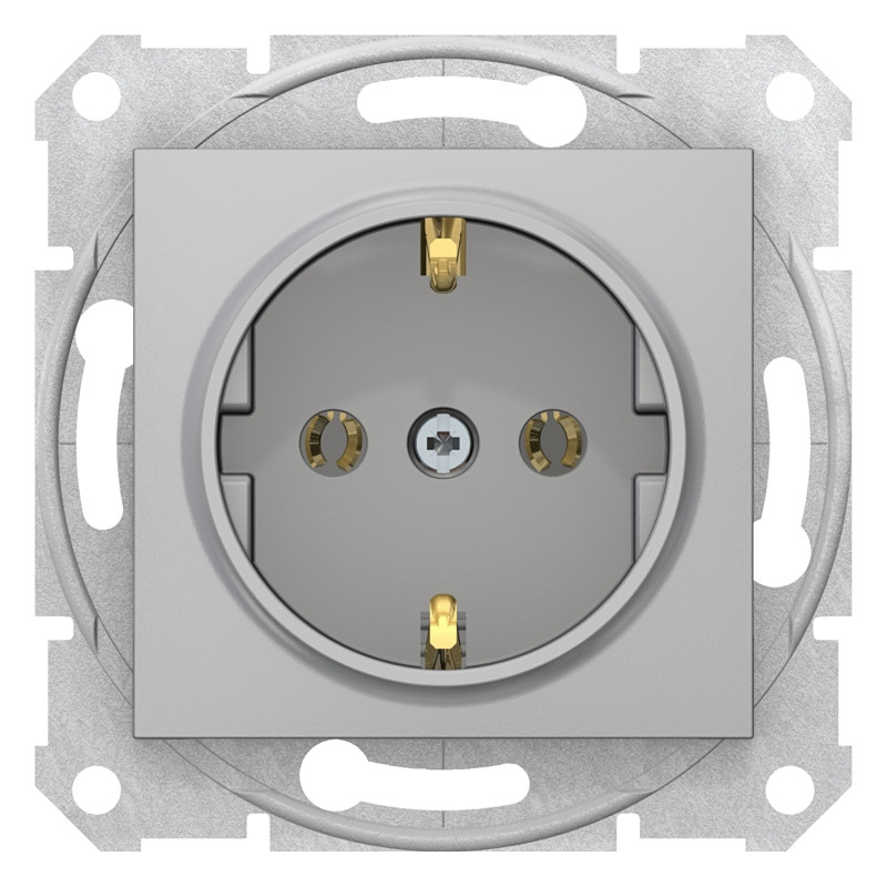 Розетка Schneider Electric Sedna с самозажимными клемами с заземлением без шторок алюминий SDN3001860