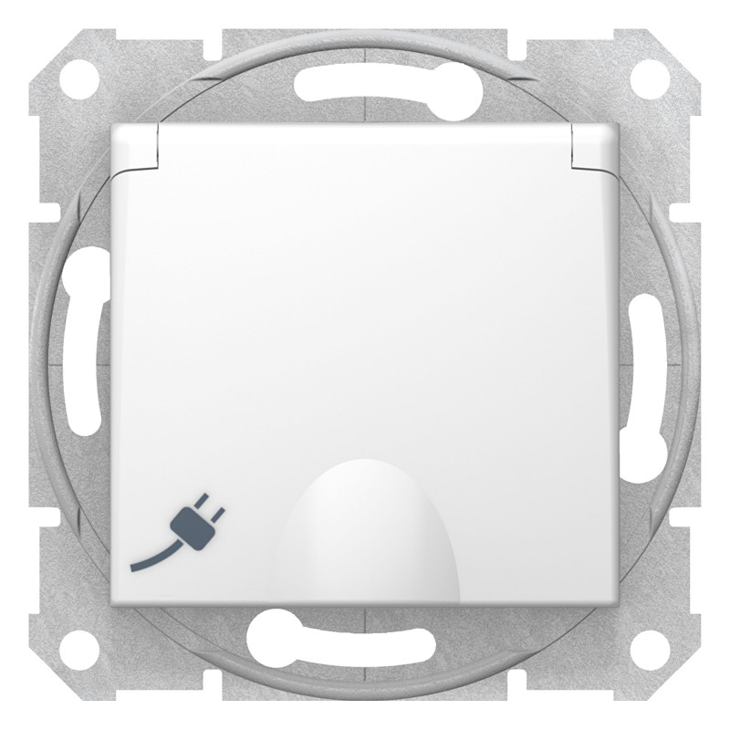 Розетка Schneider Electric Sedna с самозажимными клемами с заземлением шторками и крышкой белый SDN3100421