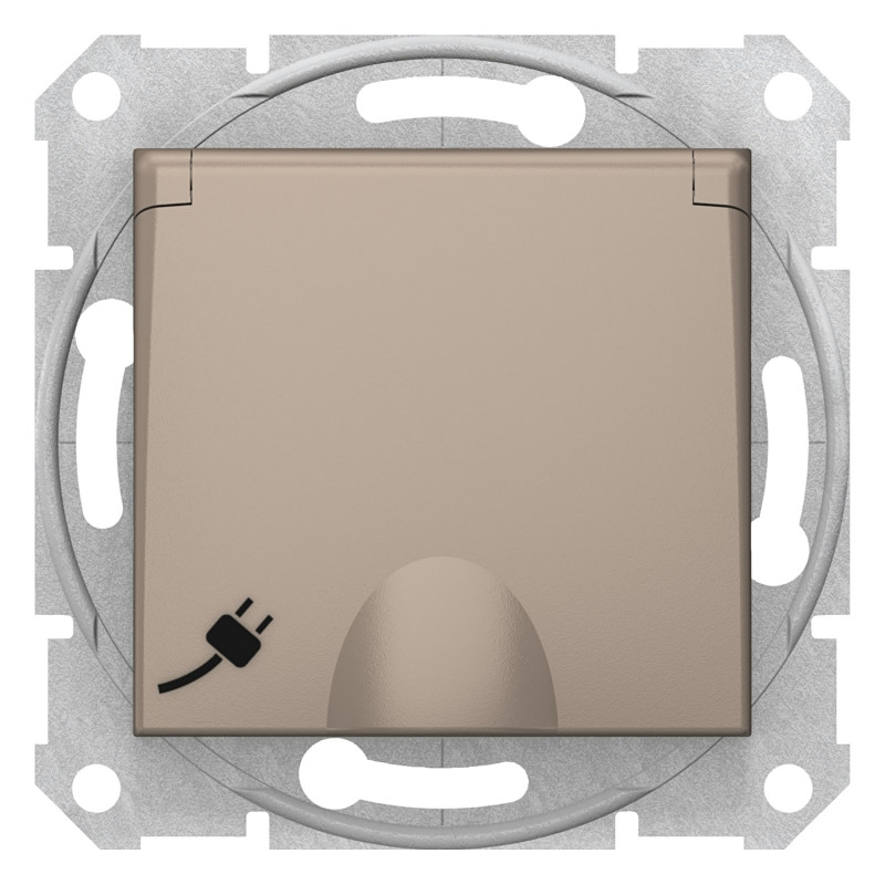 Розетка Schneider Electric Sedna с самозажимными клемами с заземлением шторками и крышкой титан SDN3100468