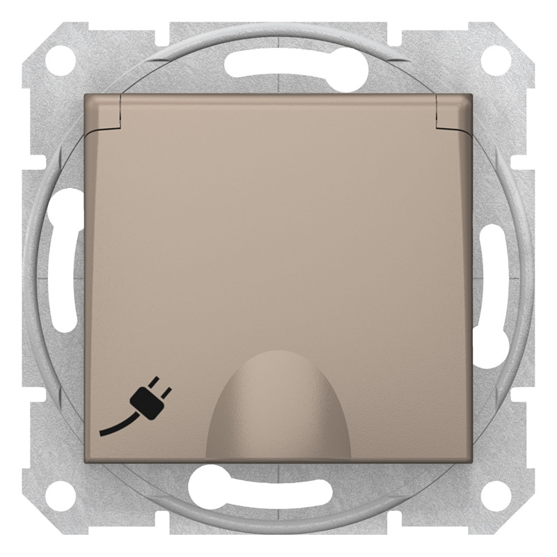 Розетка Schneider Electric Sedna с заземлением со шторками и крышкой титан SDN3100168