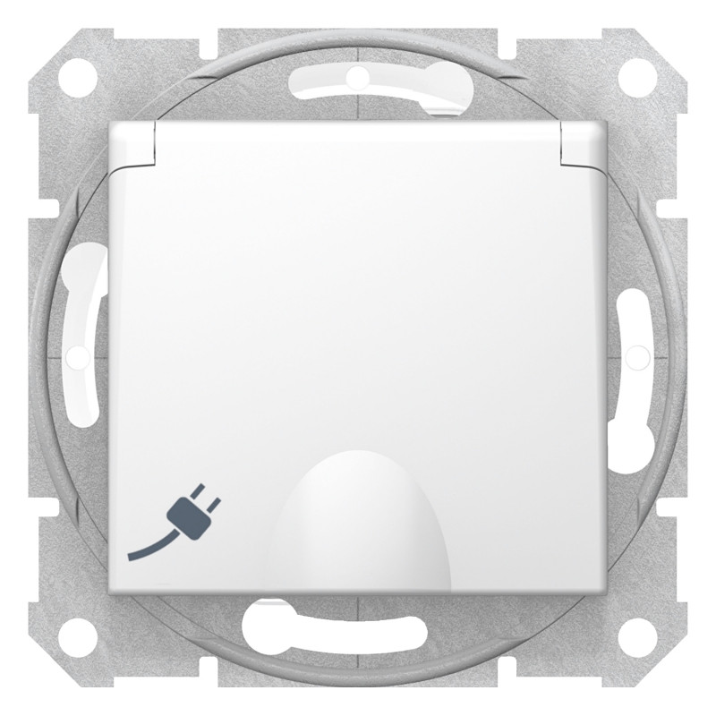 Розетка Schneider Electric Sedna с заземлением со шторками и крышкой IP44 белый SDN3100321