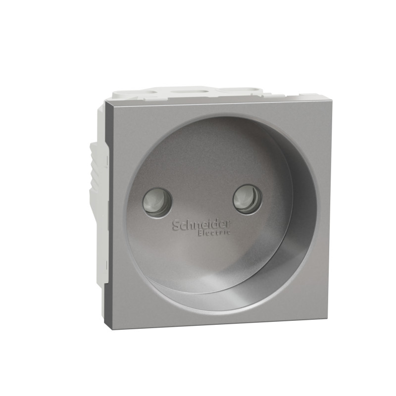 1) Розетка Schneider Electric Unica New 2 модуля без заземления алюминий