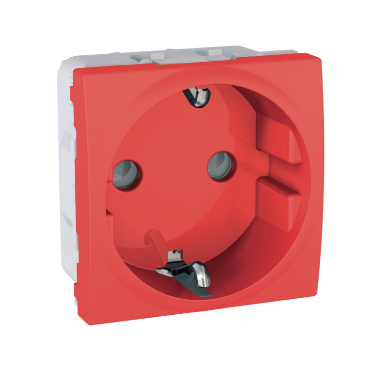 Розетка Schneider Electric Unica с заземлением и защитными шторками 16А красный