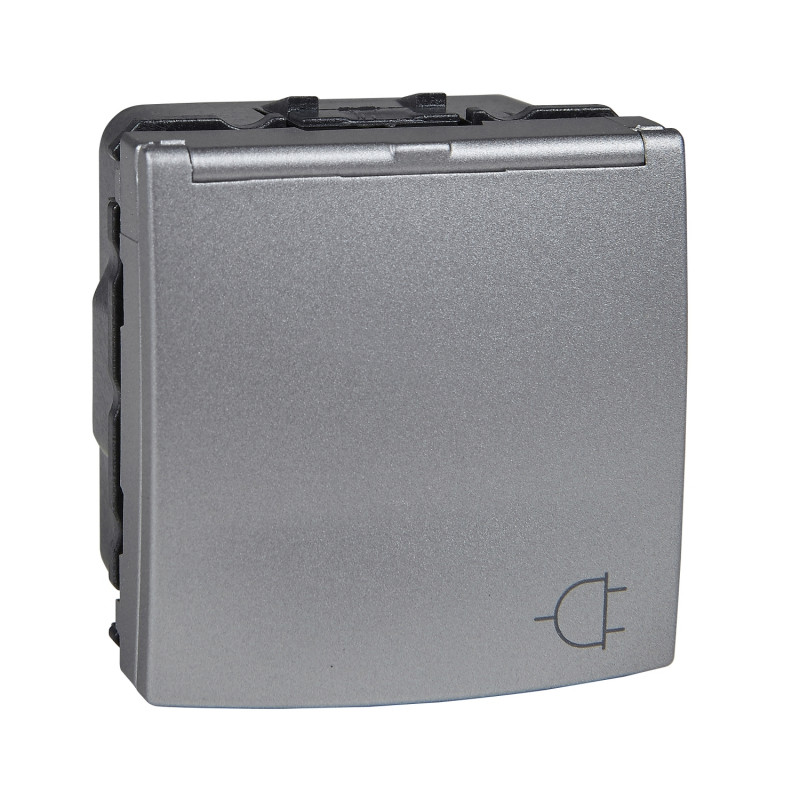 1) Розетка Schneider Electric Unica с заземлением с защитными шторками крышкой алюминий