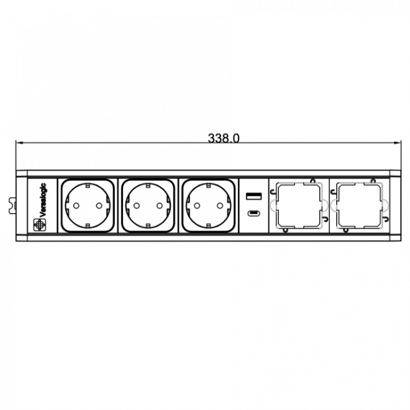 Розеточный блок ASA Plastici VersaTek 3х220В + USB Type A+C с двумя свободными тунелями алюминий 061.00F.00020