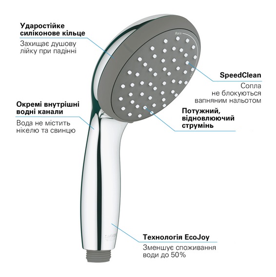 - ShockProof – силиконовое кольцо, предотвращающее возникновение повреждений при падении ручного душа