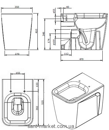 1) Чаша унитаза Sanindusa коллекция Advance 127032