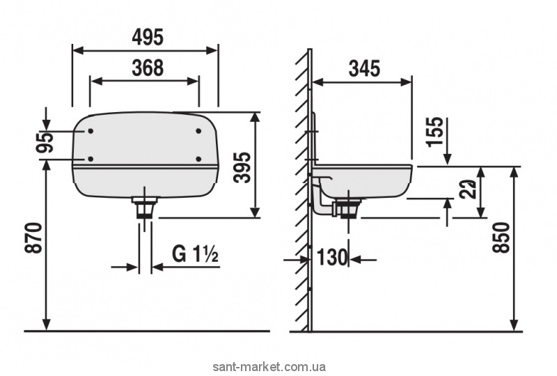 Мойка для кухни прямоугольная Sanit Multiset 49.5х34.5 на стену (настенная) пластик белая 60.001.01.0000