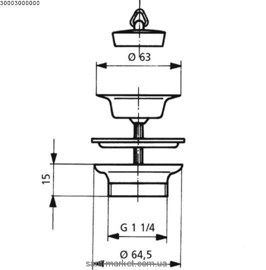 Sanit Верхняя часть сифона с пробкой для раковины 30.003.00.0000