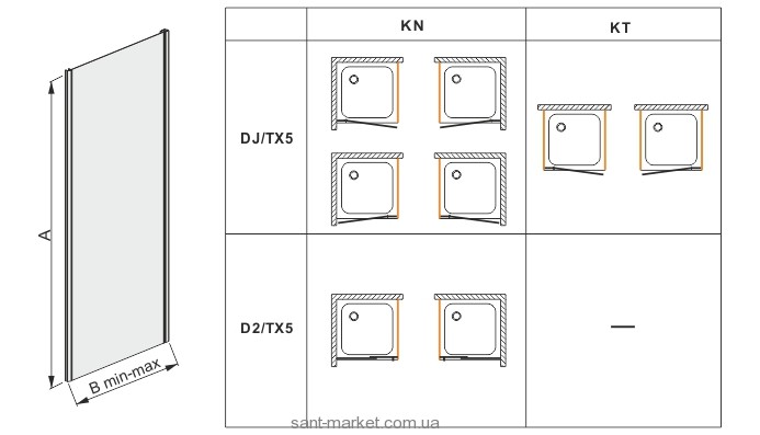 Стенка SS0/TX5 предназначена для комплекта с дверями распашными DJ/TX5 и передвижными D2/TX5. Стенка SS0/TX5 даёт возможность создать угловую и трёхстенную кабину любого размера.