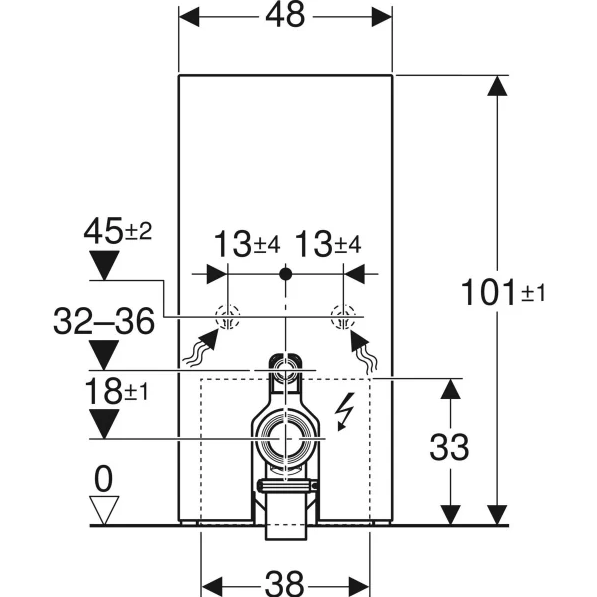 - Для напольных унитазов с высотой подвода воды для смыва 32–36 см для полов согласно стандарту DIN EN 33