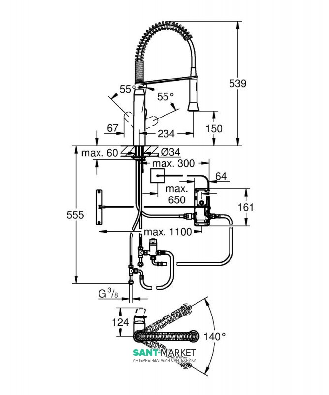 K7 Foot Control Сенсорный однорычажный смеситель для мойки 1/2“ средний излив Foot control: подача воды с использованием сенсорного датчика электропитание от литиевой батарейки 6 V, тип CR-P2 Одобрено в СE магнитный клапан фиксированный расход воды при подаче воды с использованием сенсора автоматическое безопасное выключение подачи воды после 60 сек. непрерывной работы (заводская настройка) тип защиты IP 44 GROHE SilkMove® керамический картридж 35 мм профессиональная лейка автоматический переключатель аэратор/SpeedClean душевая струя автоматическое возвратное переключение на аэратор после выключения регулировка расхода воды поворотный трубкообразный излив радиус поворота 360° с защитой от обратного потока гибкая подводка система быстрого монтажа.