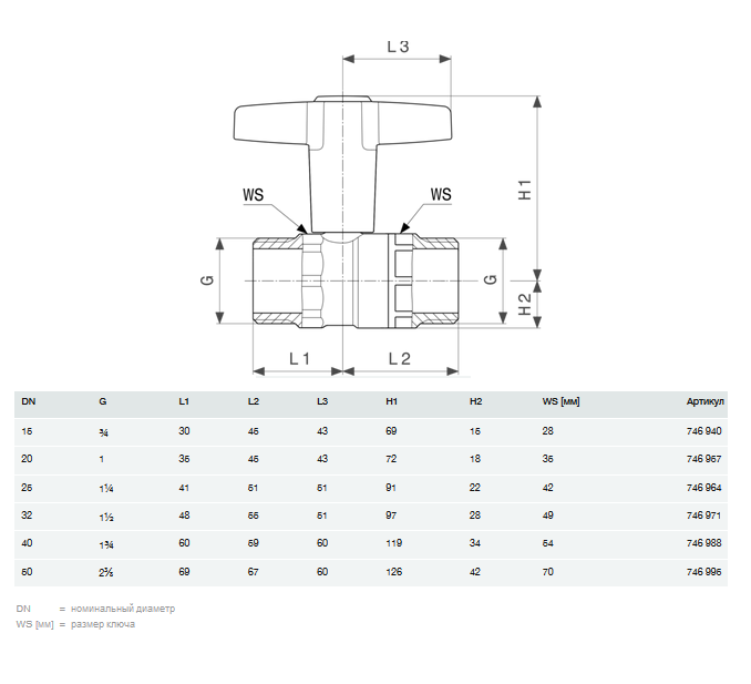 - Т-образный маховик с центральной заменяемой маркировочной вставкой зеленого/красного цвета
