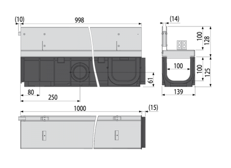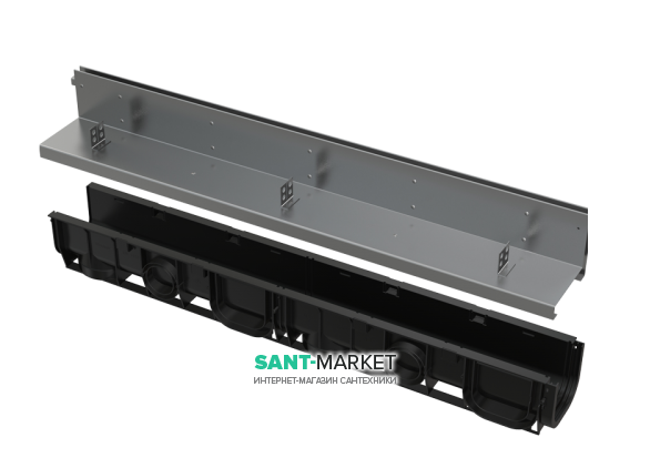 Щелевой дренажный канал 100 мм с асимметричной надставкой из нержавеющей стали С250