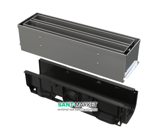 Щелевой дренажный канал 100 мм с симметричной надставкой из нержавеющей стали С250